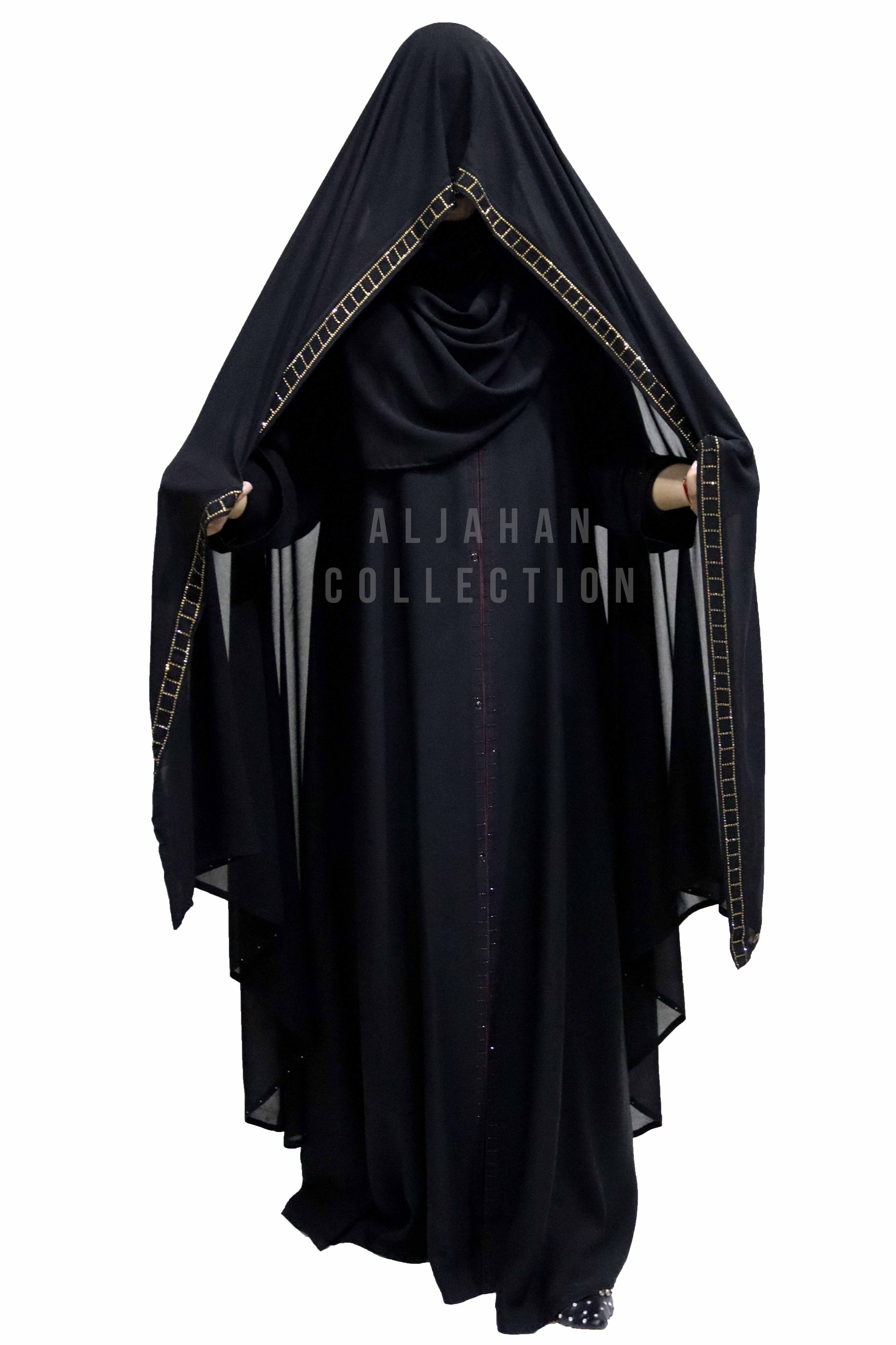Wrap yourself in the charm of understated luxury with the Stones Self Chaddar by Aljahan. This black chaddar features an intricate self-stone design, blending subtle sparkle with modest elegance. Designed for effortless wear, it is perfect for daily use or special occasions. Crafted with high-quality materials, this easy-to-wear chaddar provides comfort and style in one sophisticated package.