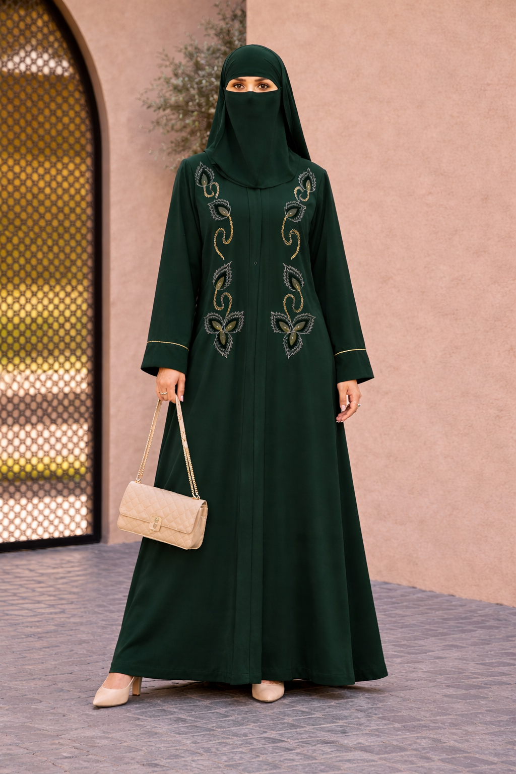 Product Overview: A true testament to artisanal craftsmanship, The Aurelia is designed for the woman who seeks a blend of tradition and high-fashion. This premium abaya features a stunning, symmetrical vine motif that flows elegantly down the front, making it a standout piece for any prestigious occasion.